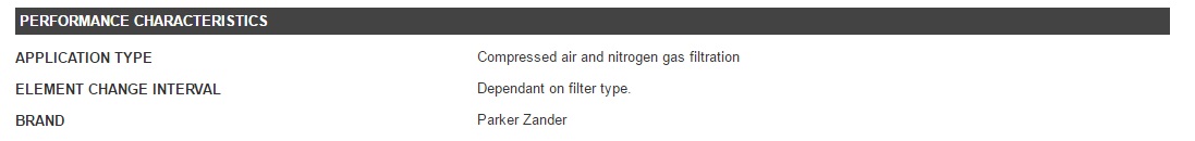 Coalescing filter grades (ZP & XP) for the removal of water and oil aerosols, solid particulates and micro-organisms , particulate retention down to 1 micron and 0.01 micron is size. Additionally a superfine filter grade (XP4) is available providing greater than or equal to 99.99999% efficiency, particulate retention down to 0.01 micron is size.