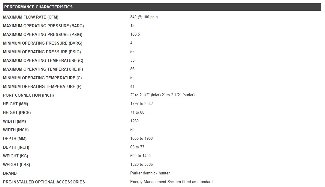 At the inlet, a water separator removes bulk water, followed immediately by a high efficiency coalescing filter to reduce oil and water content, an activated carbon filter then removes oil vapour and odours. The fourth stage of purification is an adsorption dryer that reduces the water vapour content of the compressed air (to -40°C pdp) and CO2 to below the legal permissible limits. Downstream of the adsorption dryer, a catalyst converts carbon monoxide to carbon dioxide, again, to below the legal limits. A final dust filter captures any particulates carried over from the adsorption materials.