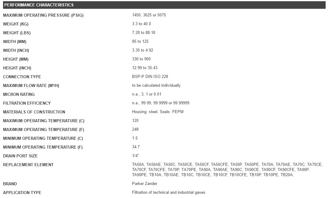 Parker Zander TGH series filters for technical and industrial gas treatment applications up to 350 bar(g)