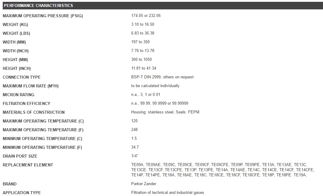Please heed to the product literature or contact your local Parker partner for more information.