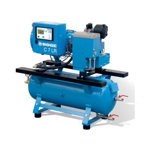 Short connections and fewer pipes thanks to integrated design with the BOGE compact module – the 7.5 kW C Series is space-saving, efficient and reliable. The compressed air receiver comes pre-assembled.