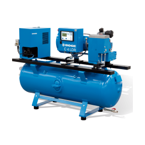 Efficiency and reliability that sets new standards: for the 7.5 kW C Series, the larger BOGE compact module is integrated. This eliminates long connections and internal piping. These screw compressors come equipped with refrigerant dryers and compressed air receivers.
