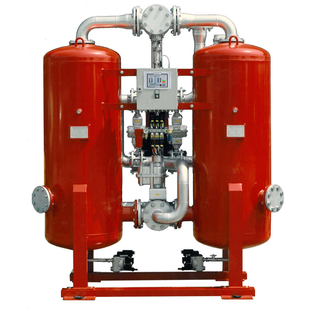 WKv series dryers are so called heat of compression dryers (HOC), in contrast to conventional adsorption dryers, HOC dryers make use of excess heat from oil-free compressors to regenerate the desiccant beds thereby eliminating the requirement for an installed heater. HOC dryers are therefore a cost and energy efficient solution.